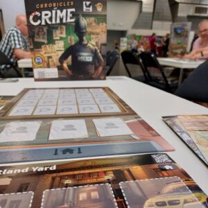 Unter anderem Chronicals of Crime von David Cicurel erschienen bei Corax Games. Ein kooperatives Ermittlungs-Spiel für 1 bis 4 Spieler ab 14 Jahren. Mittels Spielbrett und App wird eine Geschichte erzählt. Man löst gemeinsam Kriminalfälle und sucht nach Zeugen, Verdächtigen und allen möglichen Hinweisen um das Kapitel zu schaffen. Nutzt man zusätzlich die Option in die virtuelle Realität einzusteigen kann man sogar Hinweise in 3D Welten finden.