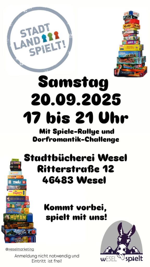 Es war wieder so weit. Stadt, Land, Spielt, wovon wir wieder ein Teil sein durften. Diesmal als Teil der Weseler Kulturnacht und wieder in Kooperation mit der Stadtbücherei.