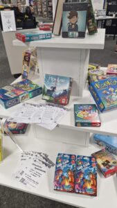 SLS hatte wieder ein Spielepaket geschnürt und wir haben die Auswahl wieder mit privaten Spielen unserer Mitglieder erweiert. Somit ergab sich eine große Auswahl. Ein paar Spiele haben wir auf unterschiedlichen Tischen aufgebaut und dazu gab es vorne eine Spieleausleihe, an der man sich bedienen konnte. Zudem gab es ein Dorfromantik Turnier, bei dem man die Neuheit Dorfromantik – Leichtes Gepäck gewinnen konnte.